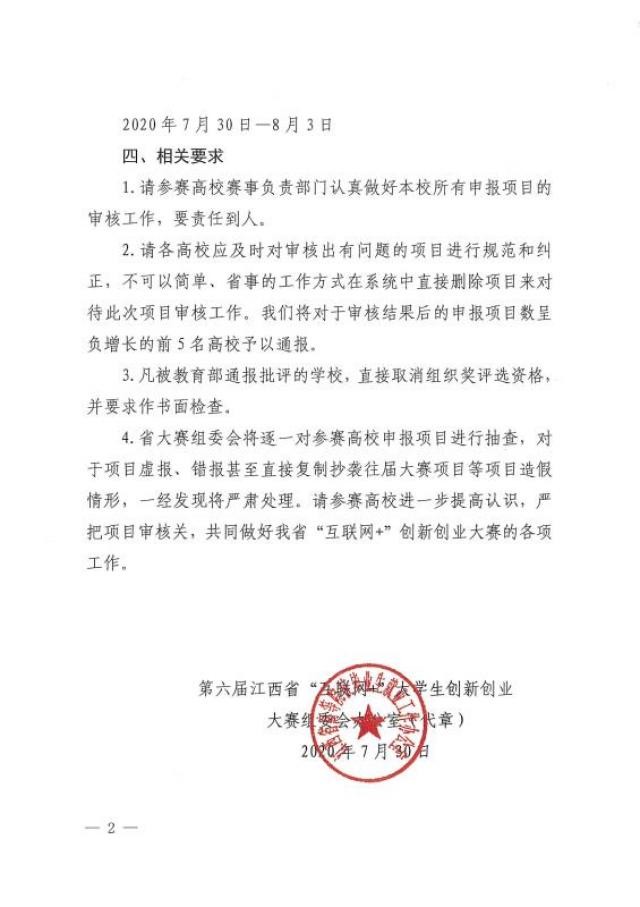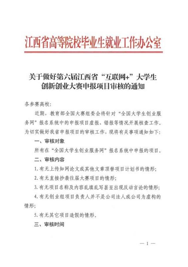 关于做好第六届江西省“互联网+”大学生创新创业大赛申报项目审核的通知
