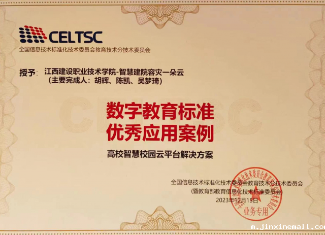 2023年12月18日,教育部职业院校数字校园建设试点暨职业教育院校中台对接工作培训会在江苏苏州召开,教育部职业教育与成人教育司在会上对《职业院校大数据中心建设指南》、职业教育数字化战略行动政策等做了专业解读,并对职业教育数字化转型的意义、发展方向和重点任务做了部署。其中,我院大数据与智慧校园中心提交的《智慧建院容灾一朵云》做为数字教育标准优秀应用案例在会上受到了表彰。